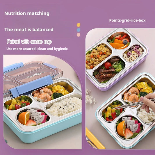 High quality Four grids Stainless steel sealed lunch box with bowl student office portable bento box with spoon chopsticks