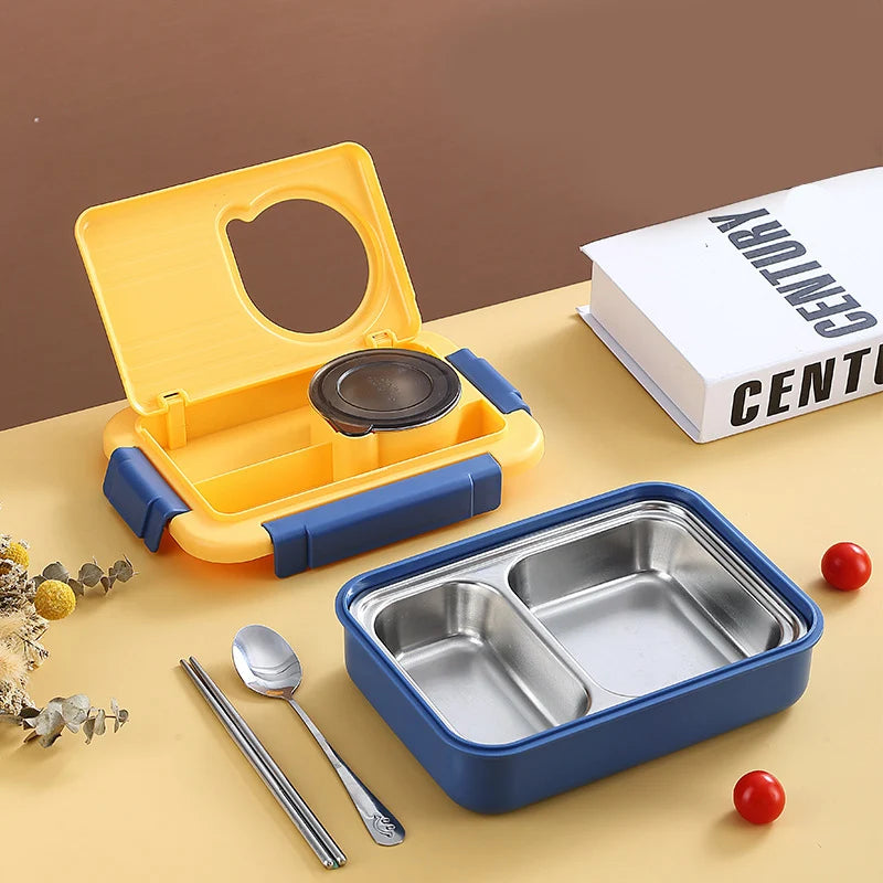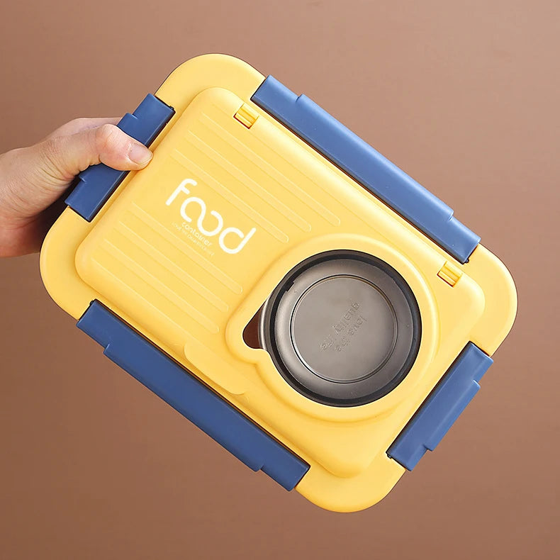 The Box Bites Bento Box Food Container is a high-quality, vacuum thermal stainless steel lunch box designed for superior temperature retention. Featuring 3 separate compartments (grids) and a dedicated soup bowl, it is the perfect solution for carrying a variety of foods, keeping them hot or cold for longer periods.