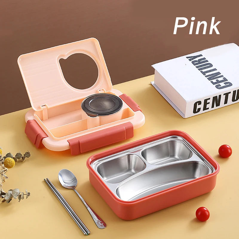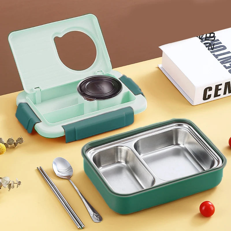 Bento Box Food Container Rectangular Lunch Box with soup bowl Vacuum Thermal Stainless Steel Factory Wholesale 3 Grids Rectangle