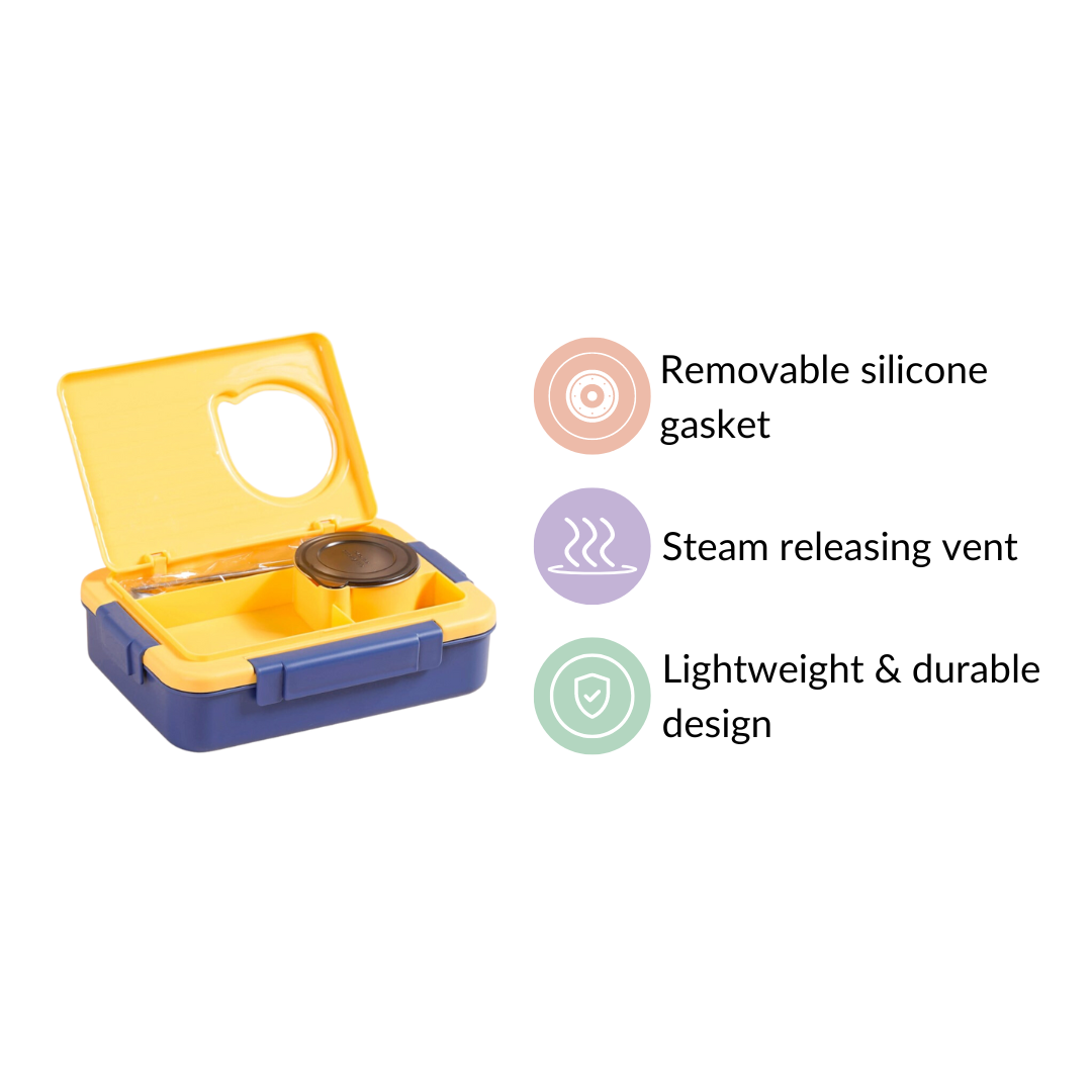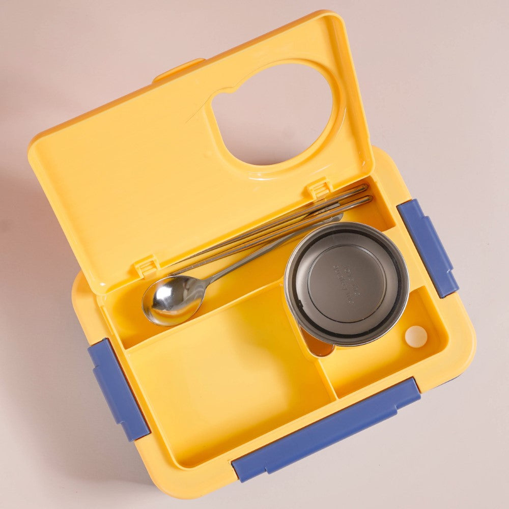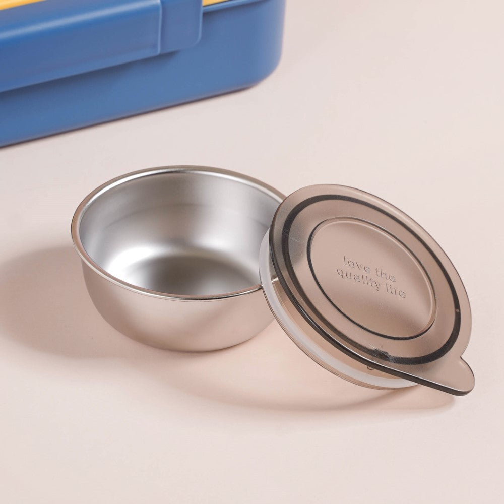 The insulated lunch box can be your ultimate stylish lunch companion! Crafted with 304-grade stainless steel, this BPA-free and non-toxic tiffin box ensures your food stays warm and fresh. With 4 separate compartments, the bento box allows you to carry a wide selection of nutritious home-cooked food. With the innovative warm water insulation feature, you can maintain the optimal temperature of your meals for hours. Simply remove the stainless steel bowl and fill the bottom PVC basin with warm water for superb heat retention before enjoying your meal. The PVC top lid with clip locks on all sides and a silicone gasket keep your food fresh. The included small bowl allows you to carry snacks or dry fruits without the hassle of packing a separate tiffin box. Lightweight yet incredibly durable, the stainless steel lunch box is perfect for everyday use. The lunch box comes with a set of stainless steel spoon and chopsticks for a hassle-free eating experience while on the go. Upgrade your lunchtime routine with our lunch box with compartments for a healthier lifestyle while preserving the environment.