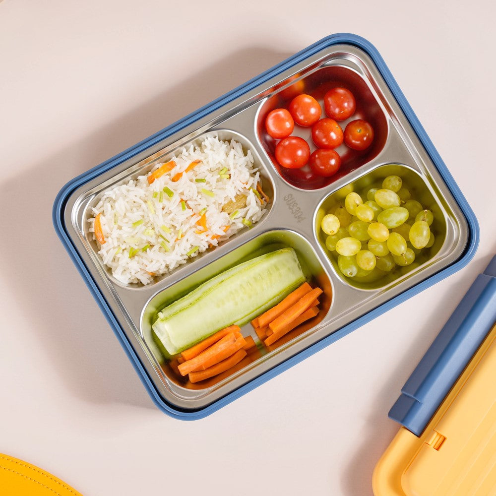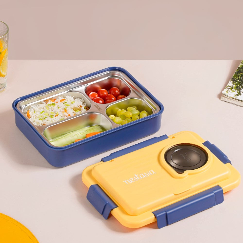 Nestip: Pack a wholesome and nutritious meal of dry veggies, rice, and salads in the four separate compartments of the stainless steel tiffin box for office.